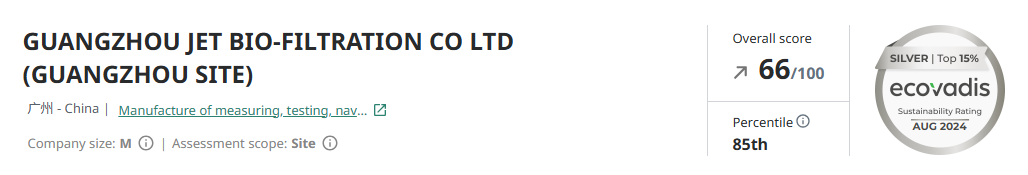 潔特生物榮膺Ecovadis銀獎(jiǎng)!躋身全球受評(píng)企業(yè)前15%