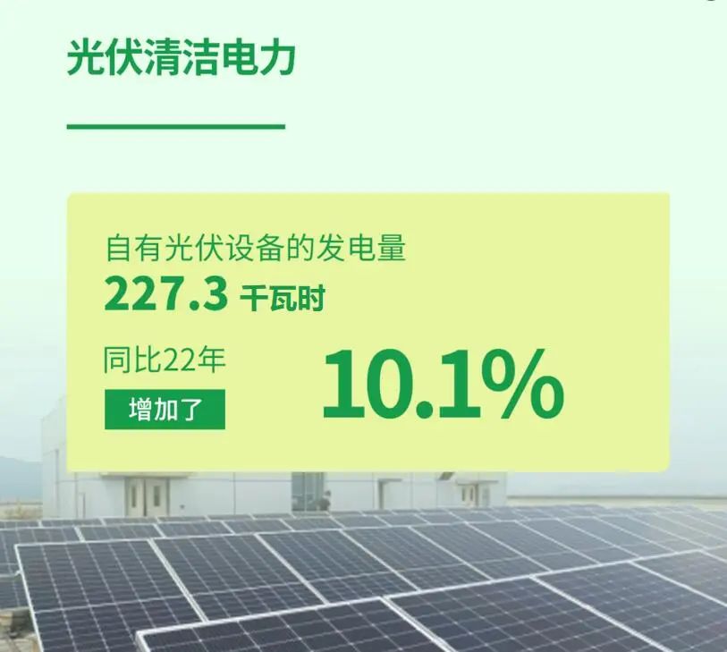 潔特生物通過(guò)興建自有光伏發(fā)電設(shè)備機(jī)組,在自身運(yùn)營(yíng)中持續(xù)引入可再生清潔能源,減少對(duì)外部傳統(tǒng)能源的依賴,從而有效降低因范圍2活動(dòng)產(chǎn)生的碳排放量。2023年全年,企業(yè)自有光伏設(shè)備總發(fā)電量達(dá)227.3千瓦時(shí),同比前年增長(zhǎng)10.1%。在2024年1月,潔特生物位于廣州總部的新一批屋頂光伏設(shè)備已裝機(jī)并投入使用,預(yù)示著綠色清潔電力在潔特生物未來(lái)的能源使用中將擁有更高的占比。