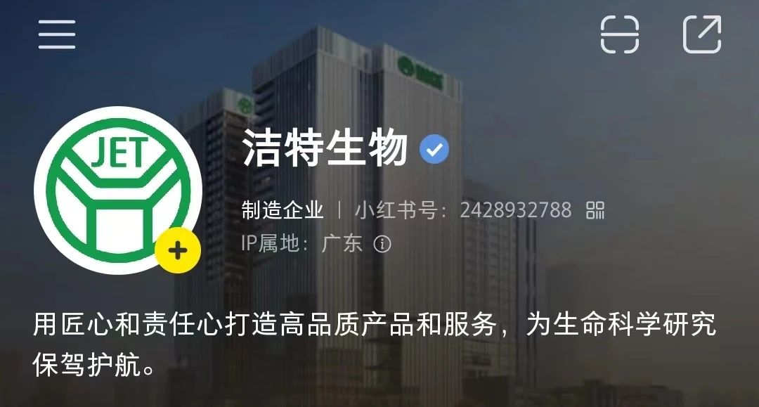 1. 關(guān)注微信公眾號(hào)“潔特生物JET”、小紅書官方號(hào)“潔特生物”