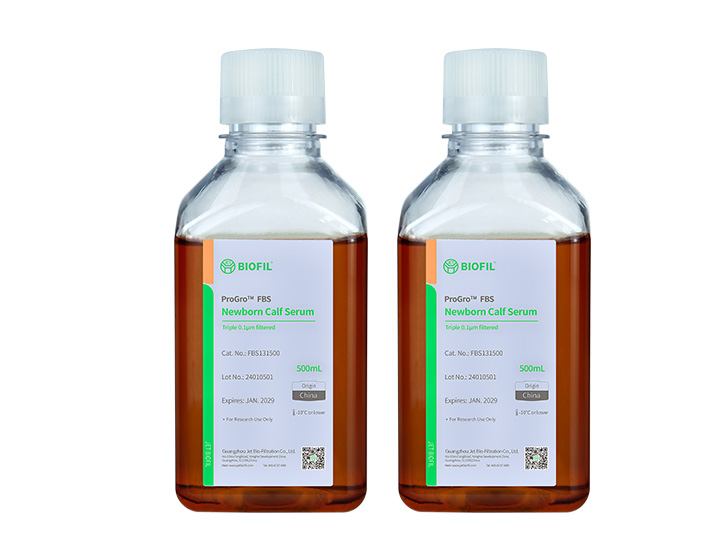 新生牛血清是由新生牛全血,經(jīng)自然層析、離心后收集得到去除血細(xì)胞、纖維蛋白、凝血因子等成分的淡黃色透明上清液體,含有大量細(xì)胞生長(zhǎng)所需的微量元素、激素和蛋白質(zhì),可添加到細(xì)胞培養(yǎng)液中支持細(xì)胞的生長(zhǎng)、分化和維持正常生理功能。ProGro™新生牛血清,產(chǎn)自國(guó)內(nèi)優(yōu)質(zhì)血源地,在標(biāo)準(zhǔn)血清凈化車間生產(chǎn),產(chǎn)品性能穩(wěn)定、批間差異小,適用于常見細(xì)胞系培養(yǎng)。